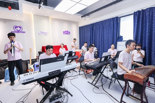 一星破晓,万芒纷至。贝贝用琴键不仅释放了自己,也让无数被沉默笼罩的家庭听到了希望的声音。为了帮助更多的孩子,在深圳市民政局等单位的支持下,几位妈妈于2013年发起成立了国内首个由孤独症青少年组成的公益乐团——爱特乐团。初创时,没有资金、场地,孩子们只能集中在彼此家中轮流练习。在民政部门的指导下,乐团开始建章立制、规范化运作,积极链接社会慈善资源,吸引更多爱心人士参与,推动设立的“爱特基金”,为乐团培训提供了稳定的经费支撑,逐步解决了资金和场地难题,也使参与的孩子持续增加。如今,爱特乐团已从简单的电子琴合奏,发展到吉他、贝斯、古筝等多种乐器交响,迈进音乐原创阶段。截至目前,乐团演出超过200场,开展免费公益培训逾1400课时,惠及7800余人次,从一个等待帮助的困难群体到反哺社会、传递正能量的天团,爱特乐团已然成为一个公益慈善项目品牌。