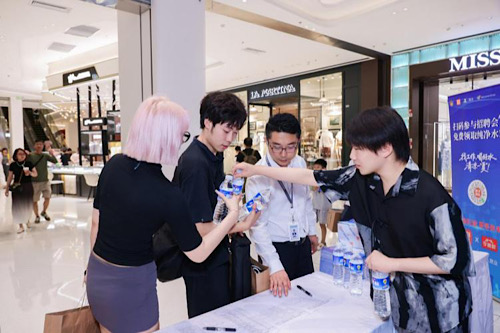 特别是北京专场招聘会现场,今麦郎携手即刻职达特别准备了一瓶又一瓶的今麦郎“蓝标”饮用水,免费赠饮,一起为现场的求职者实实在在地“解渴”,更送上实实在在的关怀和祝福。