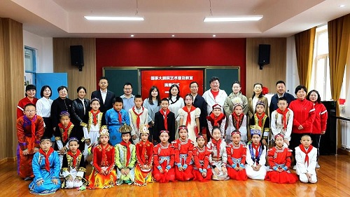 而新落成的“艺术普及教室”中,教学一体机、音响、钢琴、合唱台等先进硬件设施一应俱全,师生们还可以通过线上课堂来获取更多的教材和音视频。9月18日上午,在“艺术普及教室”捐赠仪式过后,城镇小学的学生们表演了蒙古舞蹈《吉祥的筷子》、蒙古短调《察哈尔八旗》、维吾尔族舞蹈《快乐的童年》、冬不拉合奏《我的伙伴》、钢琴演奏《喷泉》等精彩节目,展现了多民族文化的交融与活力。