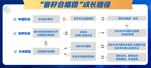 “音籽”寓意“音乐的种子”。该计划创新性地将乡村教师本身视为最具生命力的“活种子”,通过系统性培育与支持,使他们成为能够自行“播种”“育林”的美育中坚力量。通过“米多多公益直播间”的线上学习与选拔机制,每年从全国范围内遴选出60名真努力的一线乡村音乐教师,将其吸纳为“音籽合唱团”成员。