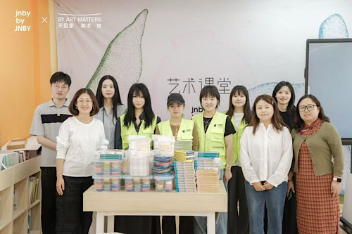 这并非一次偶然的相遇,而是一场双向奔赴的延续。今年8月,jnby by JNBY便支持上海真爱梦想公益基金会的“去远方”公益研学项目,邀请了乔庄小学校的6位学生来到杭州,在夏令营中以布为媒,走进艺术。而今天,“艺术课堂”又来到孩子们的家乡,让这场关于美的探索,在乡村校园中再次启程。