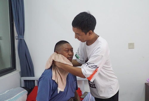 2025年4月,阿李南通过考试,正式入职青山公园敬老院。从“被照顾者”到“照顾者”的身份转变,让他对责任有了更深刻的理解。面对两名全失能老人和一名听障老人的专属护理工作,他展现出超越同龄人的耐心:为大小便失禁的老人每天洗澡换衣,从不用手套和口罩;给牙齿不好的老人把肉剁成细末;深夜陪伴哭闹的老人聊天,直到对方安睡。入职不久,他遇到一位拒绝洗澡并辱骂他的老人,但他没有退缩,而是想起福利院护理员对他的悉心照顾,耐心劝说,最终打开了老人的心扉。阿李南的工作得到了同事的认可,敬老院院长李翠花更是赞许不已。