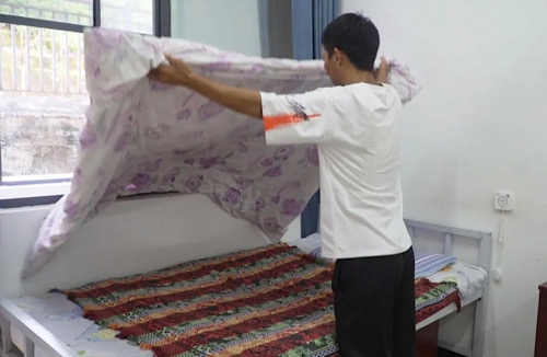 在福利院的日子里,护理员们的耐心照料更让他铭记于心。因为年纪小、玩性大,他睡前常常忘记上厕所,经常尿床,但护理员们从未责骂过他,总是默默帮他换床单、洗被套,后来还专门定了闹钟,每天夜里提醒他上厕所。老院长向孔光更是格外上心,每逢周末都亲自到学校接送他们,还时刻关心他们的学习,督促完成作业。这些温暖的细节,在阿李南心中种下了感恩的种子,也让他悄悄立下心愿:长大后一定要像这些叔叔阿姨一样,去帮助需要照顾的人。