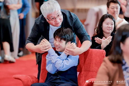 盛原教授的优秀学生之一,中央音乐学院的视障青年钢琴家袁彬轩即在现场弹奏了钢琴曲《拥抱你》,沁人心脾的旋律和钢琴家精湛过人的演奏技巧,顿时让全场观众如痴如醉。