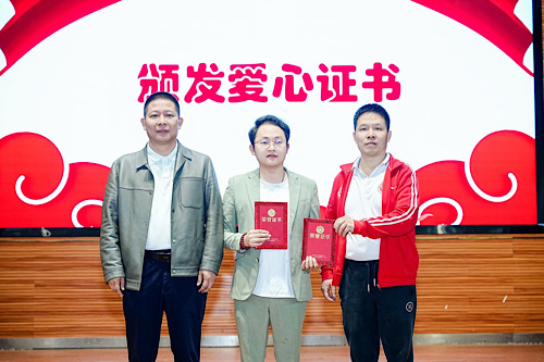 仪式最后,校方向德元授予爱心证书,对其善举表达诚挚谢意与高度认可。