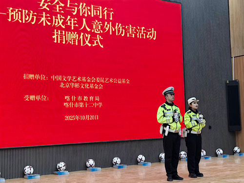 10月20日,“安全与你同行——预防未成年人意外伤害”活动捐赠仪式在兵团第三师图木舒克市第一中学举行。中国文学艺术基金会姜昆艺术公益基金、北京华彬文化基金会相关嘉宾以及喀什地市相关部门负责同志参加活动。