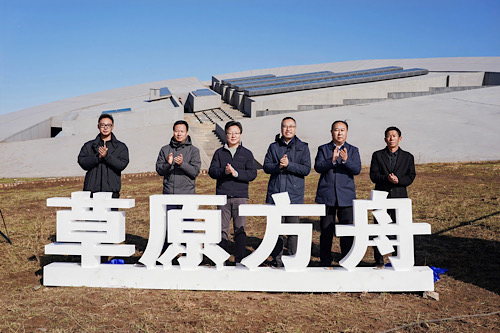 活动现场,现代汽车集团(中国)副总经理朴国哲,中国乡村发展基金会副秘书长王军,兴和县委副书记、政府县长李锴栋,兴和县人大常委会主任赵瑞,兴和县涝利海旅游专业合作社理事长杨艳章,庄子玉工作室建筑高级项目经理星梦钊共同为“草原方舟”进行揭幕。