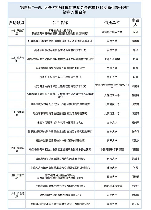 日前,由一汽-大众和中华环境保护基金会共同主办的第四届“汽车环保创新引领计划”完成初审工作。在项目组专家的层层筛选和集体审议下,20个具有创新性、前瞻性和产业价值的汽车环保科研项目从全国41个申报课题中脱颖而出,成功入围。这些项目涵盖低碳发展、动力电池、节能环保、绿色能源、驱动系统和未来产品六大领域,充分展现了中国汽车产业绿色转型的前沿探索和前瞻实力。