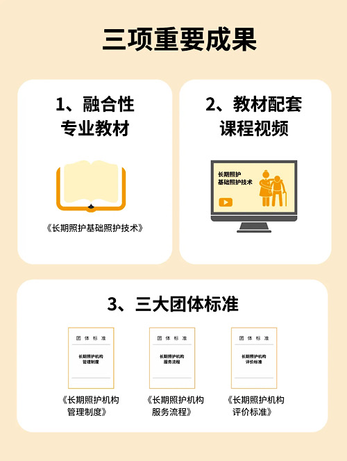 这三项成果将养老机构的管理制度、服务流程与照护质量评价进行系统化梳理,为从业者提供了统一的学习路径与实践依据,也为行业标准化建设提供了重要参考。