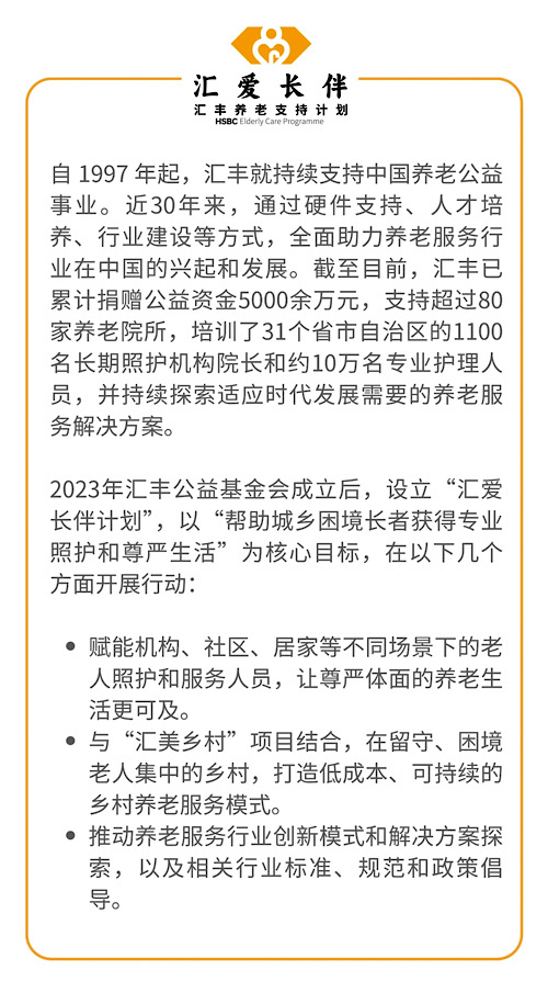 北京汇丰公益基金会理事长王颖表示,汇丰希望通过系统的学习资源与标准建设,推动照护者从“体力劳动者”向“专业服务者”转变,让每一份照护都更有尊严、更有温度。