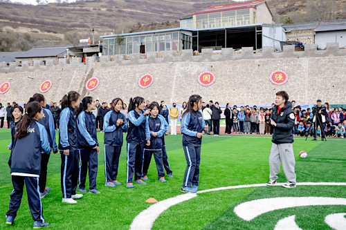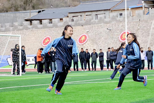 “很美”、“很软”、“很宽”……少数民族的女孩们表达略显生涩,她们更多是用在球场上肆意的奔跑表达着对这座专业球场的喜爱。而教练马金虎的讲述则画面感十足:“以前孩子们在水泥地经常摔倒蹭破皮,流血,我们看了也心疼。球场开建之后,我和娃娃们天天去工地上看,娃娃们不停地问,能不能加快点?比看自家地点里的庄稼还用心。一节节的,终于好了,好得很,好得很!”