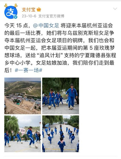 杭州亚运会时,支付宝承诺为张程小学建“玫瑰梦想球场”