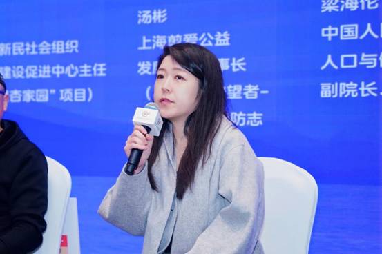 上海剪爱公益发展中心理事长汤彬以“记忆的守望者-认知症三级预防志愿服务”项目为例分享了认知症照护的挑战与创新。一位爷爷将大便拉到电饭煲里的极端行为背后,是疾病导致的认知扭曲。通过家属互助会等支持网络,项目既为照护者提供喘息服务,也帮助其理解行为背后的深层原因。