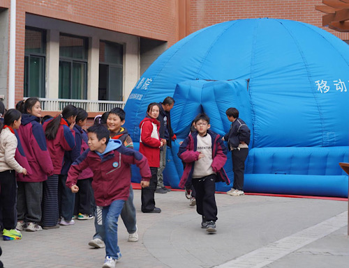 而操场上直径6米的球幕电影成为“人气打卡点”,孩子们置身其中,从太阳系行星到河外星系,15分钟的“星际遨游”让“宇宙”从课本上的文字变成触手可及的奇妙世界。