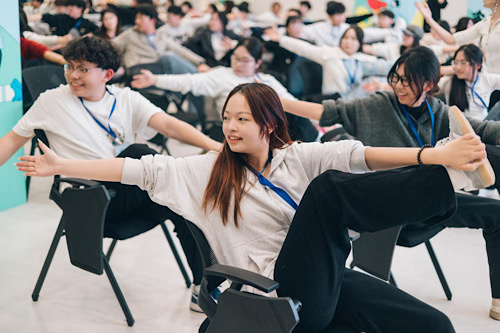 此外,热汗体验、能量开放麦等特色环节,让现场氛围温暖而热烈。本次活动邀请了多位lululemon 大使和老师助力,其中lululemon大使林敏带领大学生们体验椅子瑜伽与冥想,帮助大家寻获稳定、力量和平衡;lululemon产品教育家王薪童引领大学生开展了一场自我探索之旅,发现自己的人生愿景和目标;lululemon大使穆彦成带领了热舞派对,学生们和同伴们一起舞动,一起挥洒热汗,一起感受动起来的快乐。 大学生们在这些丰富的互动中学会打开自己,深化彼此的情感联结,沉浸式体验“一起好状态”。
