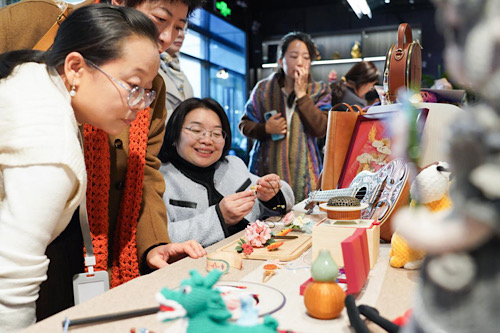 观众在互动体验区沉浸式体验了绒线编织、紫砂壶制作等工艺过程,在一针一线、一捏一塑间感受到传统技艺的文化底蕴。