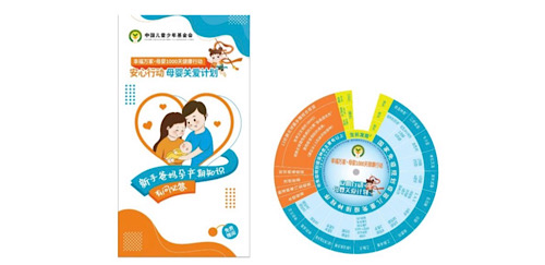 除了知识传递,项目精心制作 7 万份“母婴关爱包”,内含《新手爸妈孕产期知识有问必答》知识折页、健康转盘以及婴幼儿围兜及餐垫等物资。