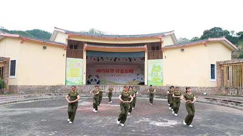“师傅,这真是东明村?”出租车刚停在粤东潮州的群山脚下,笔者望着眼前景象便忍不住发问——竹林边的广场上,统一着装的村民们伴着轻快的音乐翩翩起舞;砖石铺就的步道旁,葳蕤的树木上挂着喜庆的红色灯笼……这分明是精心打理的郊野公园景致,实在难与乡村的传统印象划上等号。