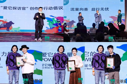它基金在暖冬会上发起“爱它探访官”创作者行动倡议,鼓励内容创作者深入公益一线,用真实镜头传递生命故事。行动倡议获得无忧传媒以及幻想家、詹秋怡、柯铭、朱美吉等内容创作者的积极响应,期待借助新媒体影响力,呼吁更多力量加入善待动物的行动行列,营造友好社会生态。