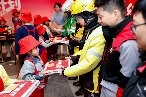 近日,必胜客青少年志愿服务行动“小红帽计划”的北京首场活动在必胜客世茂大厦店成功举行。本次活动以“守护城市新超人”为主题,为响应对新就业群体的关爱号召,传递社会温情,自12月5日国际志愿者日起,通过驻地社区联动、企业内部动员及必胜客门店招募志愿者,到场的青少年志愿者们用亲手制作的爱心披萨与暖心护膝,为冬日里辛勤付出的外卖骑手送上专属祝福与贴心关怀,既为新就业群体送去温暖,也让青少年在实践中学会关爱他人、担当责任。