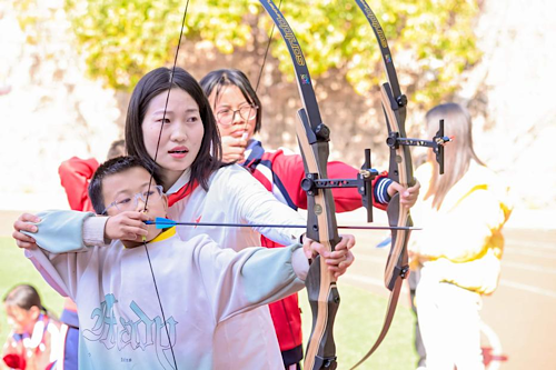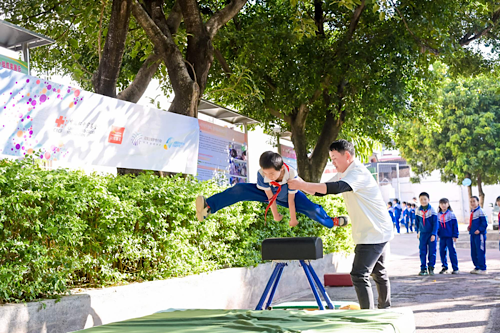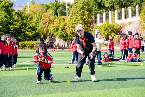 “冠军体育课”则将专业训练与趣味游戏融合。运动员们结合自身专项,为学生们设计了丰富的体育课程,带领大家体验不同运动的独特魅力。活动中,运动员们也关注到个别因身体条件限制无法参与集体活动的孩子,特别为他们设计了适宜的动作,确保每一位学生都能在安全、愉悦的氛围中享受运动,感受包容与鼓励。