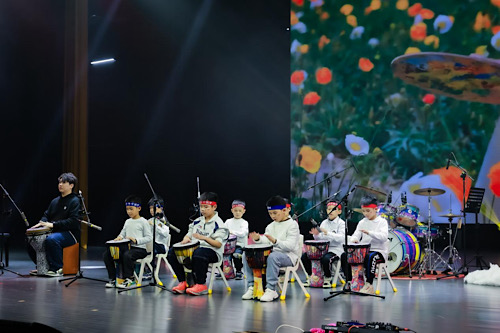 音乐会作为“和善乡风·幸福学堂”音乐公益课堂的成果展示,不仅聚焦乡村儿童艺术素养培育,也致力于为新就业群体家庭子女提供平等的艺术启蒙机会。自2025年10月起,项目为从化区乡村儿童、困境儿童及部分新就业群体子女开设了吉他、尤克里里、非洲鼓及少儿乐队等特色课程。经过数月的学习与排练,孩子们从熟悉的教室走向专业舞台,在珠江剧院的聚光灯下自信绽放。