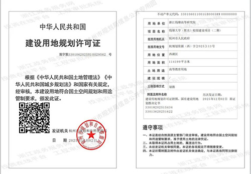 2025年12月,杭州市规划和自然资源局官网发布钱塘大学(暂名)校园建设项目(二期)建设用地(含临时建设用地)规划许可,明确了用地位置、面积及用途等相关信息。