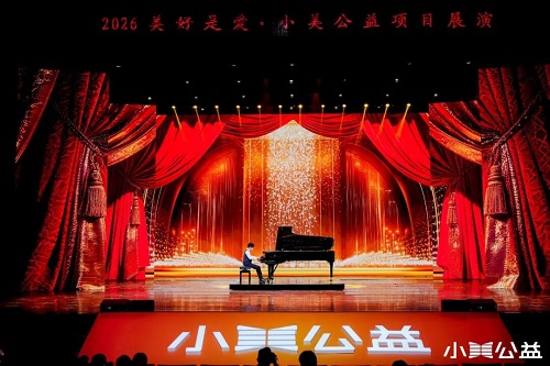 悠扬的琴声在黑暗中响起,全场观众凝神屏息,等待着一束追光温柔地落在舞台上那位钢琴少年的身上。这是一位盲童,但他指尖灵动,用音乐描绘出了一个内心澄澈、色彩斑斓的世界,并引发了现场的热烈掌声。一曲终了,视障少年袁彬轩与他的老师——中央音乐学院教授盛原携手登台,共同讲述音乐教育如何为视障儿童打开爵士即兴演奏的大门。盛原感叹道:“我的愿景,是让音乐给盲人们带来光明,更是他们未来能通过音乐为全社会带来光明。”这句充满力量的话语,也为“小美公益美好是爱”主题展演拉开了温暖序幕。