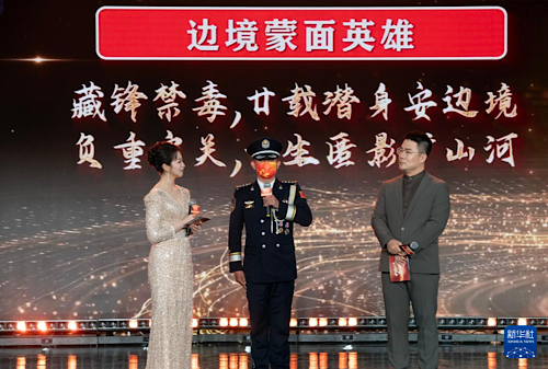 1月28日,由新华社主办的“中国网事·感动2025”公益盛典暨年度颁奖典礼在北京举行,活动揭晓“中国网事·感动2025”十大年度网络人物。这是“边境蒙面英雄”安晓华(中)出席颁奖典礼。新华社记者 李安 摄