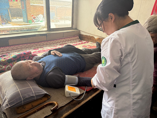 针对乡村家庭普遍存在的照护知识欠缺问题,本次回访强化了现场指导。唐山福寿康养老服务有限公司的志愿者张杰,一边讲解一边为家属演示如何为卧床老人正确翻身、拍背,如何观察皮肤预防褥疮,并讲解正确测量血压的方法。“不能头晕了才吃药,要定时、定点,固定测量同一侧手臂,比如每天早晨测量并记录,这样才能掌握血压的真实情况。”张杰耐心解释道。