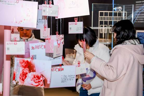 活动同期,精心策划的“为HER发声”医患故事新声展在会场展出。展览以“大医新声”“医患共鸣”“留声回响”三大篇章,呈现中国乳腺癌学术研究二十年跨越的成就,以及医患携手同行的温暖瞬间。