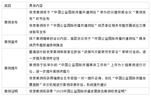 案例申报方式:下载附件进行填写,填写完成后发至联络人邮箱。附件——《2025中国公益国际传播发展报告》案例申报书.docx