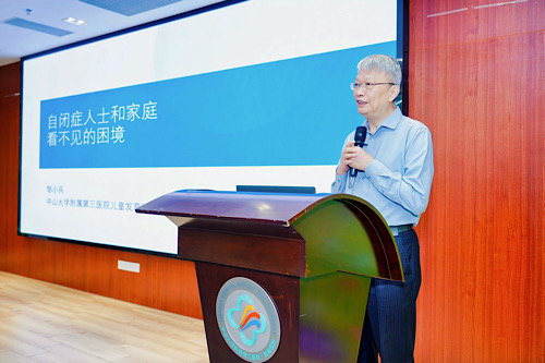 中山大学附属第三医院儿童发育行为中心学科带头人邹小兵教授围绕今年主题进行了《孤独症谱系障碍:那些看不见的困境》讲座。他指出,孤独症人士和家庭面临很多“看不见的困境”——感官超载、校园排斥、家庭中的“好心”伤害等。他提出,必须践行神经多样性本位的教育与实践,具体包括:相信能力,不因诊断而预设上限;促进自主性,尊重个体的选择与掌控;尊重所有沟通方式;根据个体需求调整支持,拒绝一刀切;尊重神经多样性文化,视差异为自然的人类形态;采取基于优势的视角,发掘而非矫正;以神经多样性者的声音为依据。这七条理念,指引我们共建真正人人友好的生态。