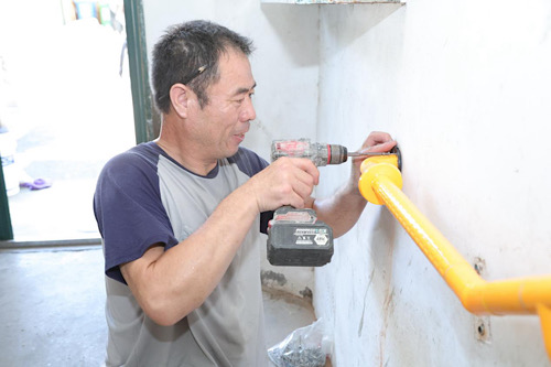 “稳当当计划”被窝整装工人志愿者安装扶手现场