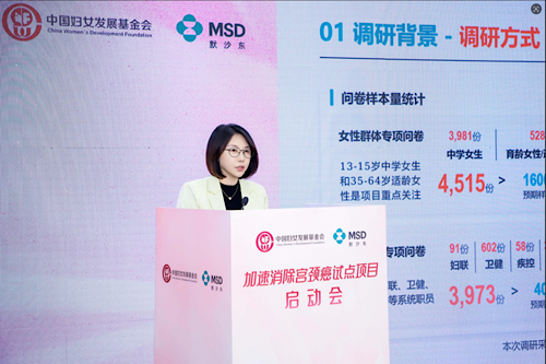 为确保项目精准对接基层需求、高效落地实施,中国妇女发展基金会合作发展办主任吴琼代表项目调研组发布了项目调研报告。报告显示,在低资源地区,受文化差异,健康意识不足、基层医务人员综合能力有限、经费不足等因素影响,适龄人群宫颈癌防治意识、疫苗接种率和筛查覆盖率相较于城市更低,离消除宫颈癌的战略目标还有一定的差距。通过实施“加速消除宫颈癌试点项目”,能够从一定程度上弥补当地资源有限的困境,促进试点地区在项目实施过程中逐步构建起科学有效的“宫颈癌”防治闭环管理体系,激发当地女性群众和家庭积极参与宫颈癌防治行动,有效降低女性“宫颈癌”发病率。