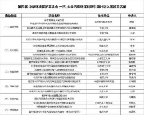 10月20日,中华环境保护基金会公示了第四届“一汽-大众汽车环保创新引领计划”的初审结果。经专家评审,共有20个具有创新性和产业价值的汽车环保科研项目从全国41个申报课题中脱颖而出,成功入围。