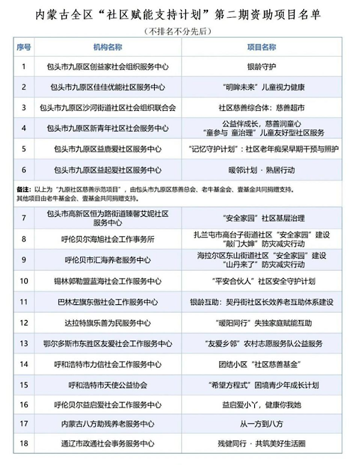 ★第二期内蒙古全区“社区赋能支持计划”资助项目名单公布 九原社区慈善示范项目签约启动
