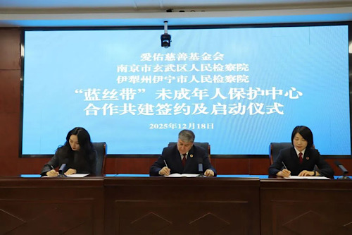 爱佑慈善基金会近日联合南京市玄武区检察院、新疆伊宁市检察院,共同启动“爱佑安生・伊宁市蓝丝带未成年人保护中心共建计划”。该计划标志着“基金会-检察机关-社会组织”的未成年人保护协作新模式正式落地。