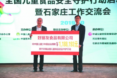 启动仪式上,好丽友向中国儿童少年基金会(以下简称“中国儿基会”)捐款118万余元,用于支持“全国儿童食品安全守护行动”在河北、河南、广东、辽宁四省开展科普活动,让孩子们能够在各类互动体验中感受到学习食品安全知识的乐趣,预计将有近10万名学童及家长从中受益。