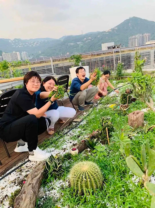屋顶花园已逐渐成为园区成员们的公共活动和交流场所。大家希望以屋顶花园为载体,在大梅沙这个美丽的海滨之地,见证垃圾分类及在地资源化的重要价值,重新建立人与大自然的亲密连接,共同营造出远山与大海之间一处“各美其美,美美与共”的小型生态系统。