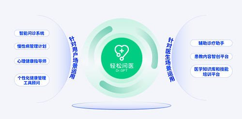 去年,轻松集团旗下轻松健康发布了自研医疗健康大模型“轻松问医Dr.GPT”,同时上线了多项创新应用,包括“智能问诊系统”“个性化健康管理顾问”“慢性病管理计划”“心理健康指导师”“医学知识库和技能培训平台”“辅助诊疗助手”以及“患教内容智创平台”,覆盖了健康管理服务全场景应用,为医护工作者提供了全面的诊疗及护理辅助支持,有效缓解其工作压力。