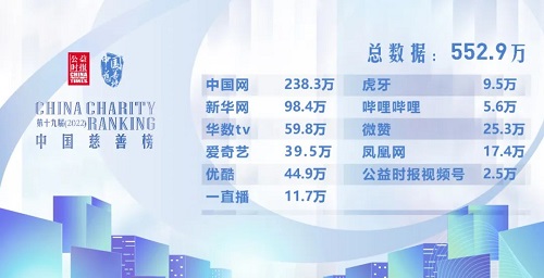 传播数据是最为直观的体现。5月30日第十九届(2022)中国慈善榜发布活动开播后,短时间内,几大直播平台就有总计超过552.9万人次同时在线观看,引发了极大的社会关注。
