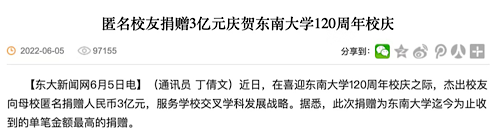 这也是120岁的东南大学迄今收到的单笔金额最高的捐赠。