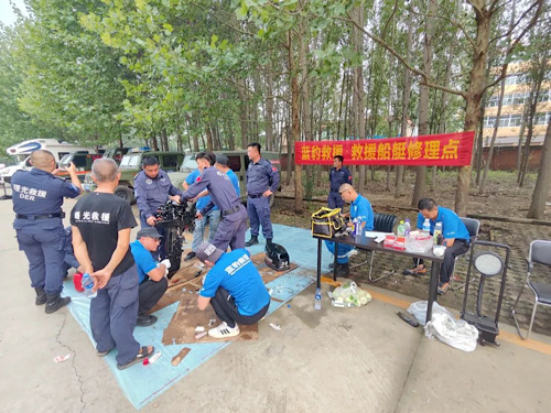 8月4日,南京蓝豹救援队开设的救援船艇修理点现场