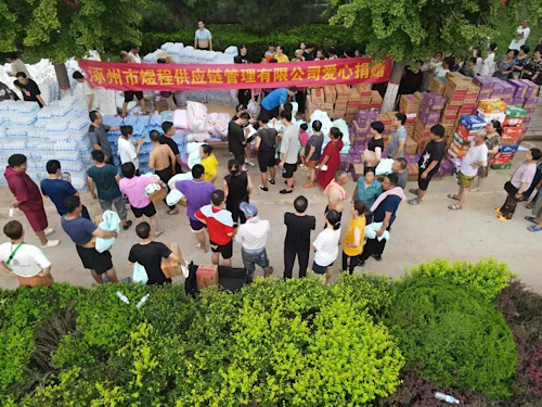 8月3日,涿州煜程供应链管理有限公司的捐赠物资送达涿州职教中心安置点