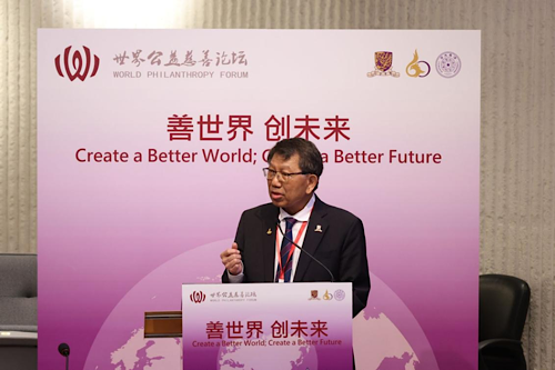 段崇智在致辞中表示,适逢中大成立六十周年,世界公益慈善论坛在港举办意义非凡。疫情后,世界面临新的挑战和机遇,公益慈善是人类道德进步和社会发展的重要指标之一,在无数领域展现出其强大的力量。香港中文大学作为可持续发展解决方案网络(SDSN)香港秘书处, 推动解决可持续发展问题责无旁贷,并培养学生积极践行社会责任。希望以论坛为平台,建立全球性的合作网络和伙伴关系,共同制定更有效的策略和计划,让公益慈善惠及世界的各个角落。