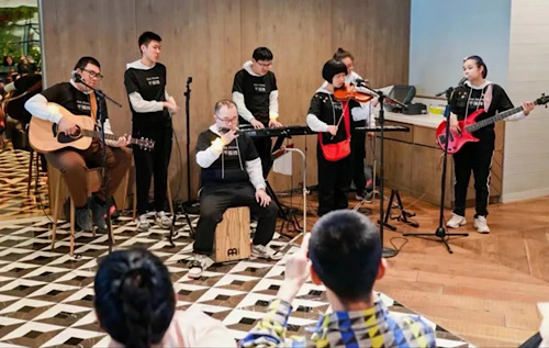 “他现在有很多事情要做,比如说学架子鼓、打击乐”,李伟强兴奋于韩达的成长,“他从自信心上有了极大的提升,特别积极并乐于参加我们的活动。”
