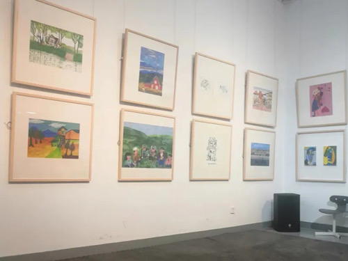 2019年,韩达所在的画室一角及部分孤独症人士画作。图/赵明鑫
