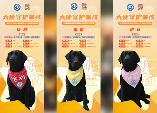 2023年,四川省科技扶贫基金会、广州市越秀区阿派关爱小动物社会发展中心和而行上海导盲犬学校共同启动中国第一批专业孤独症辅助犬的培训。