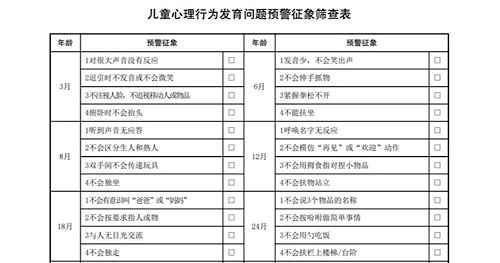 《0~6岁儿童孤独症筛查干预服务规范》中所载的筛查表